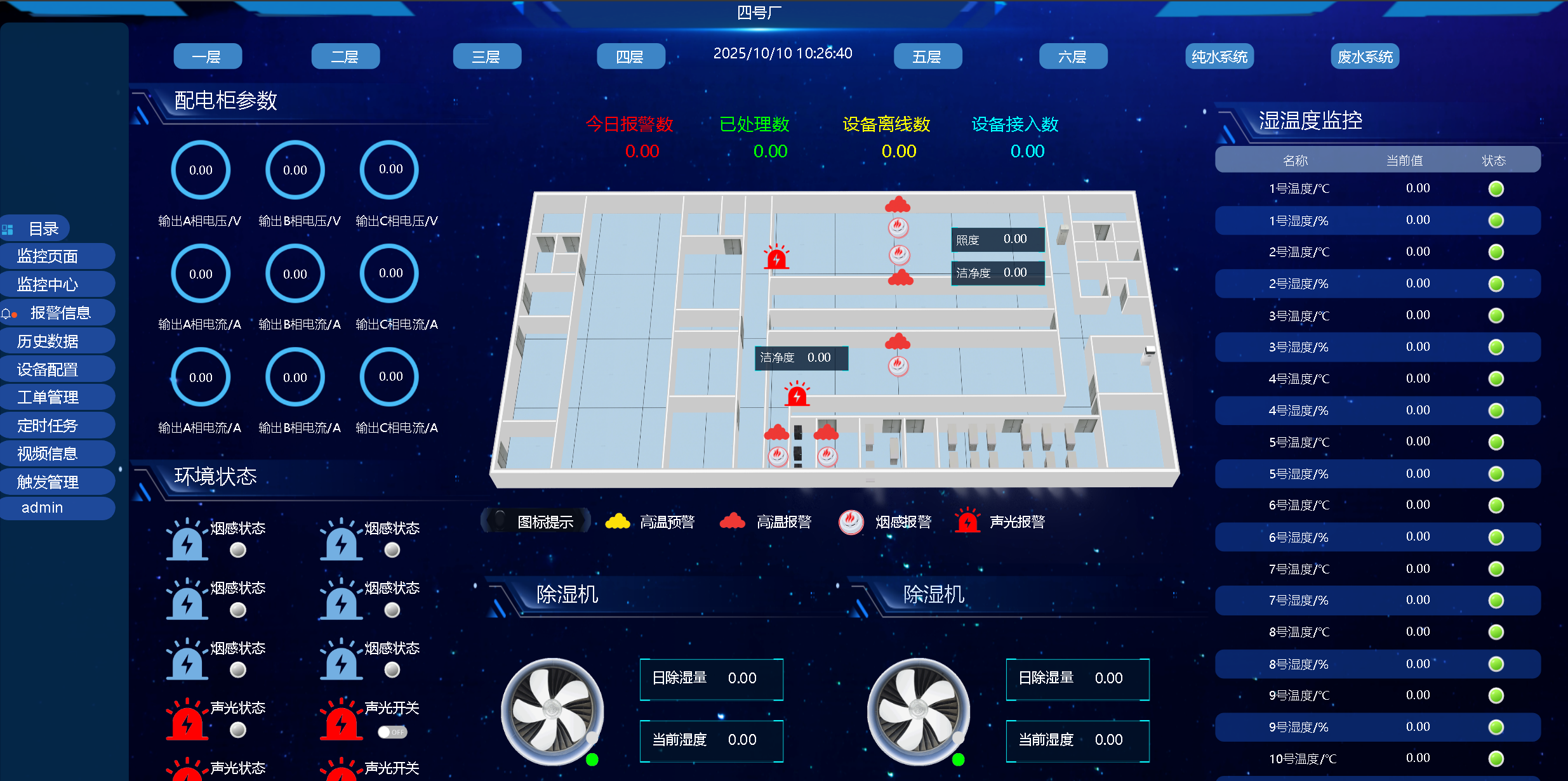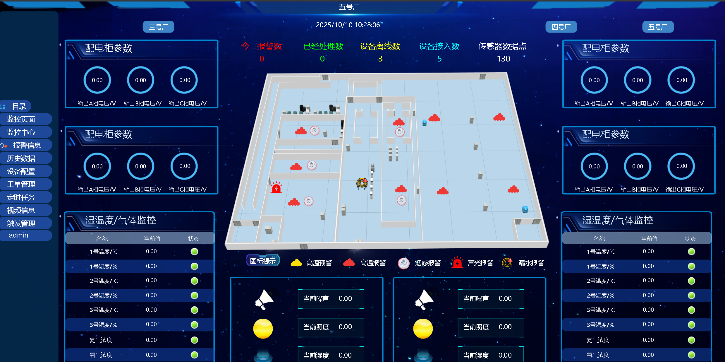 溫濕度監(jiān)控: 80個溫濕度傳感器,密集部署于生產(chǎn)線、倉儲區(qū)、設備間等關鍵位置。