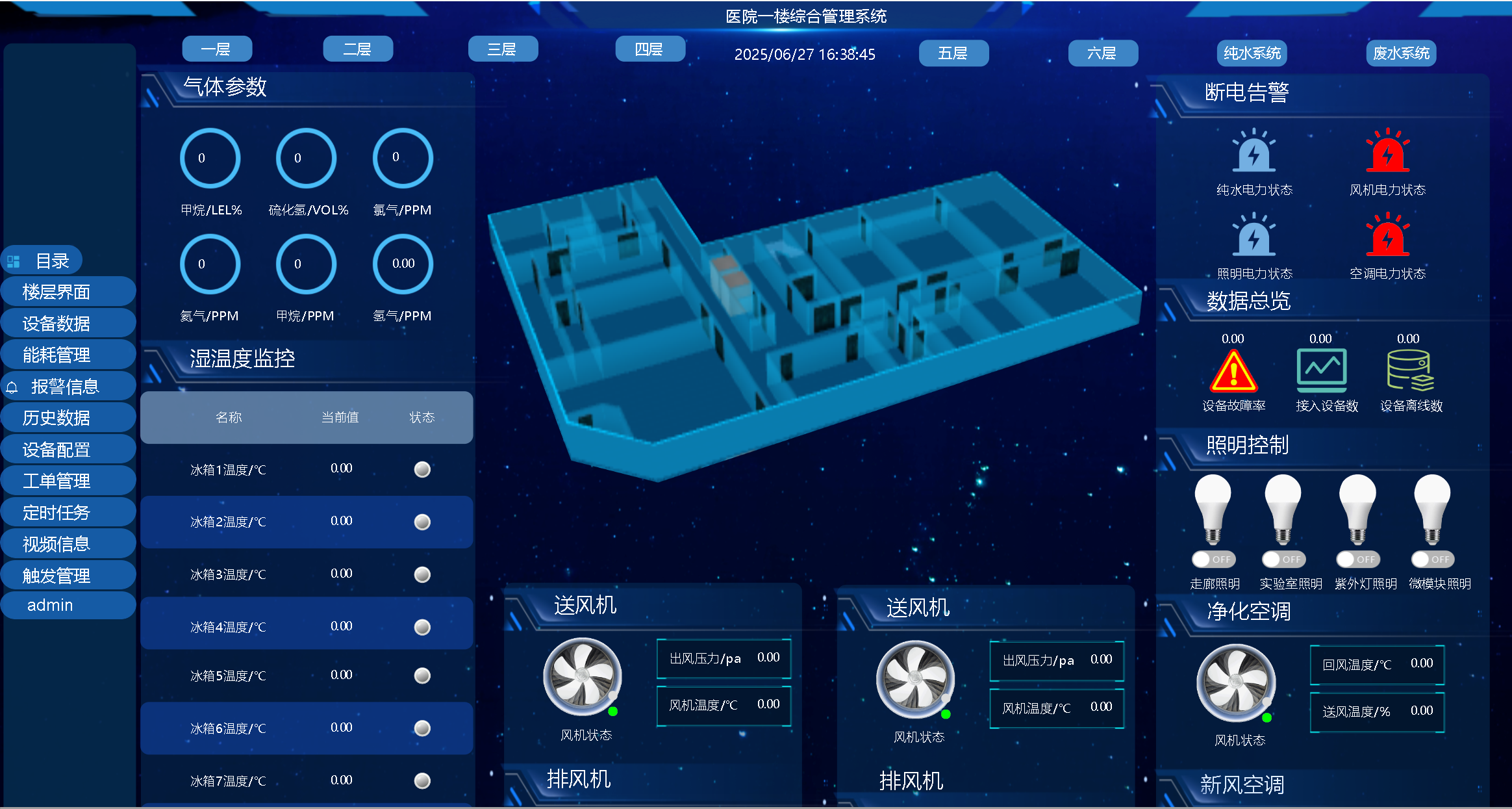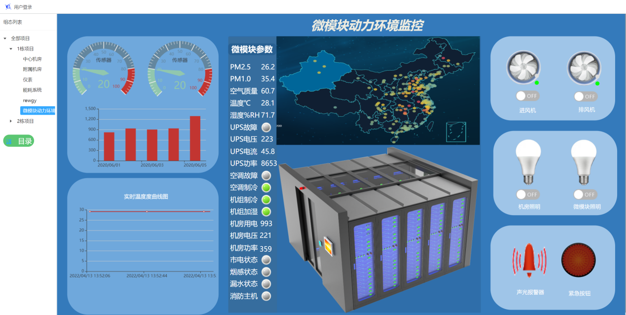 實時監測與可視化: 通過圖形化界面(平面圖、3D視圖)直觀展示所有監控參數和狀態。