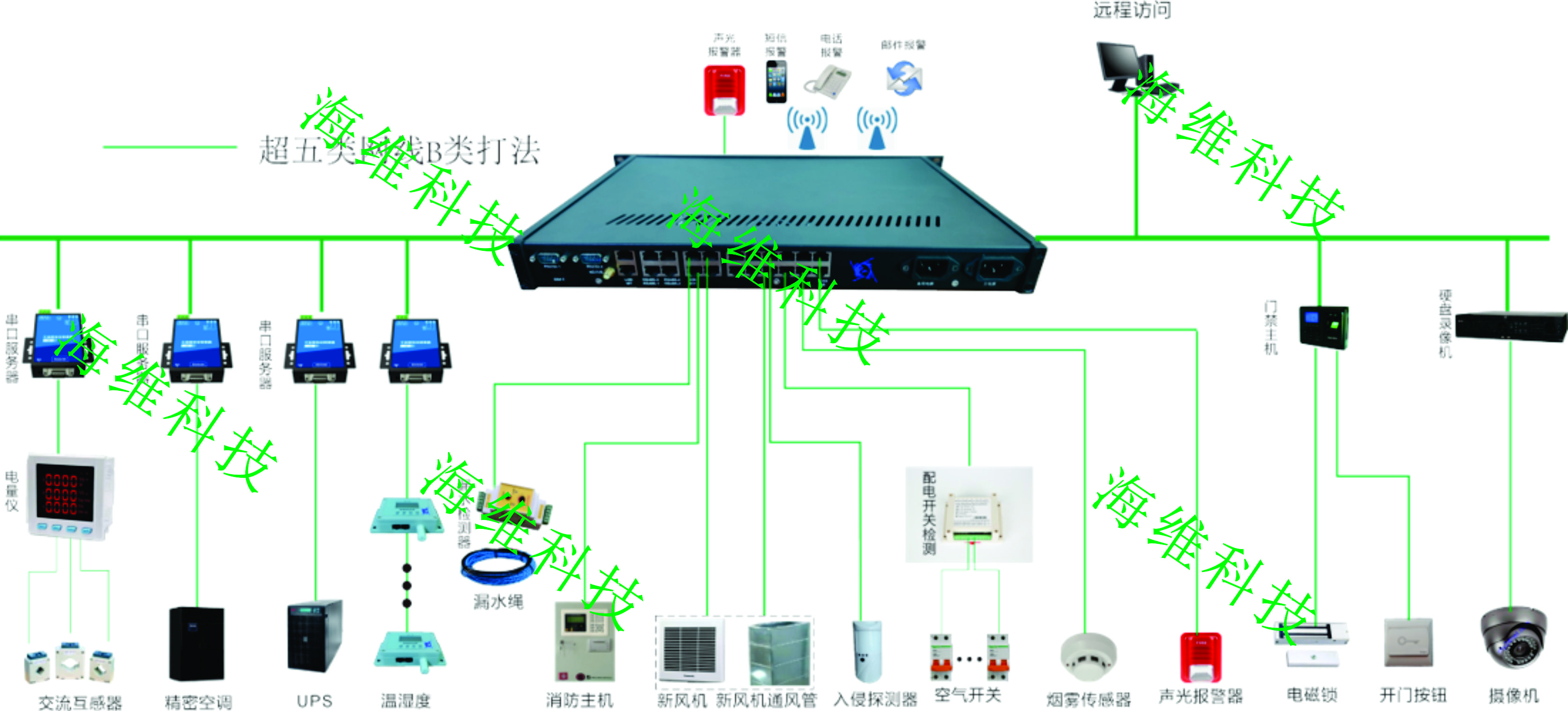 報警聯動: 如消防報警聯動門禁打開、空調故障聯動備用空調啟動、漏水報警聯動關閉電磁閥。