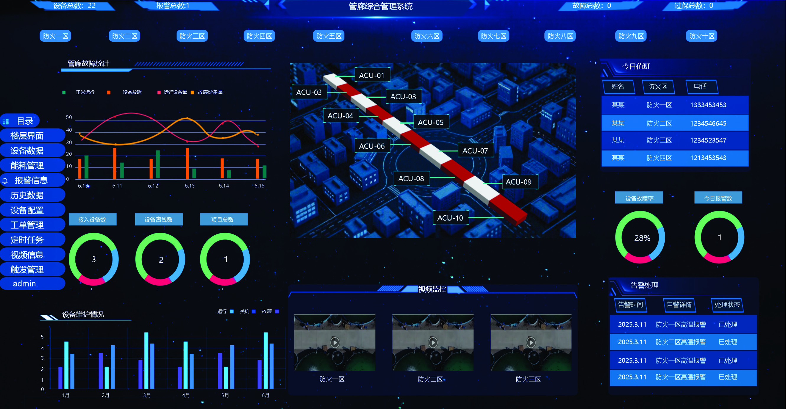 可視化: 通過電子地圖、3D模型、圖表等方式直觀展示園區狀態和告警。