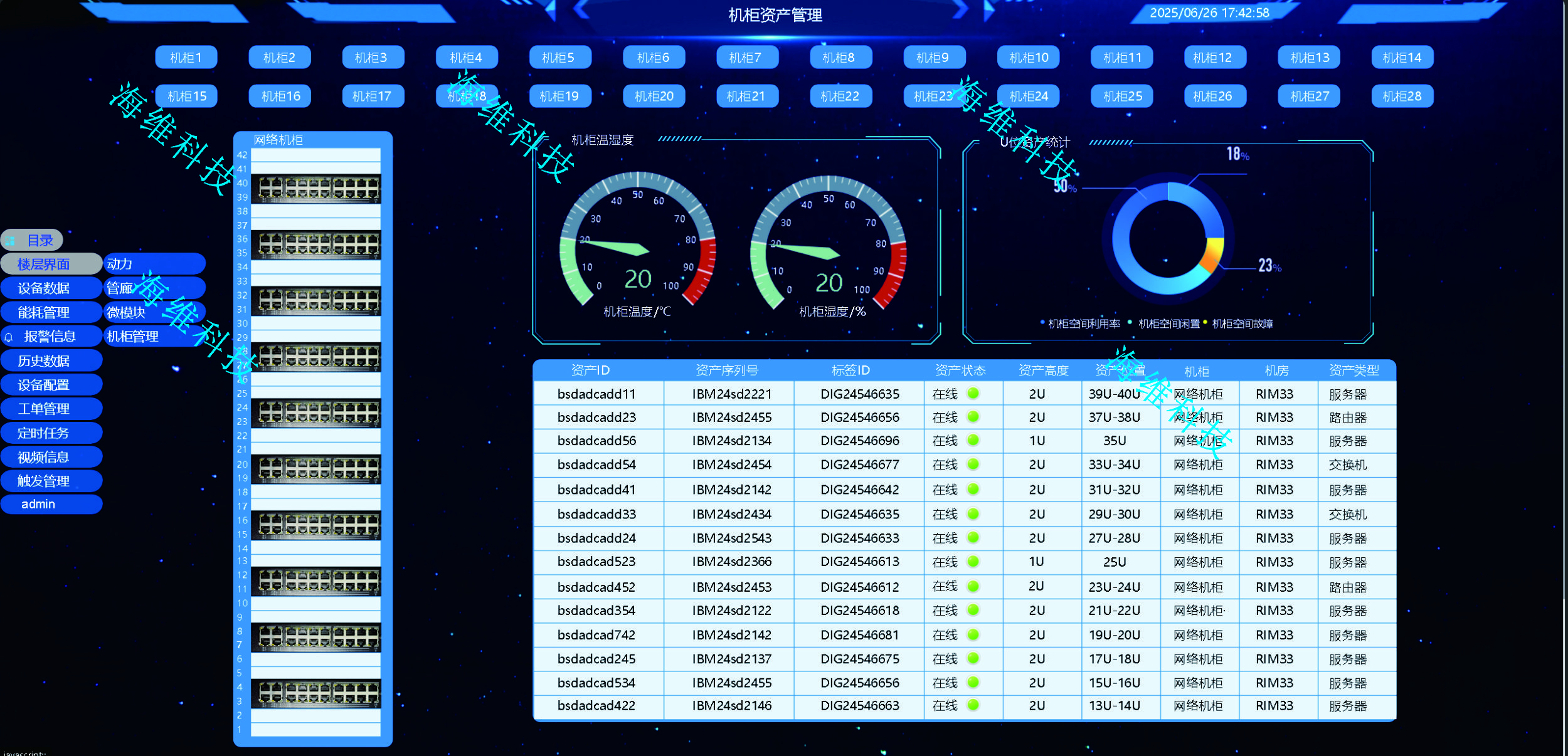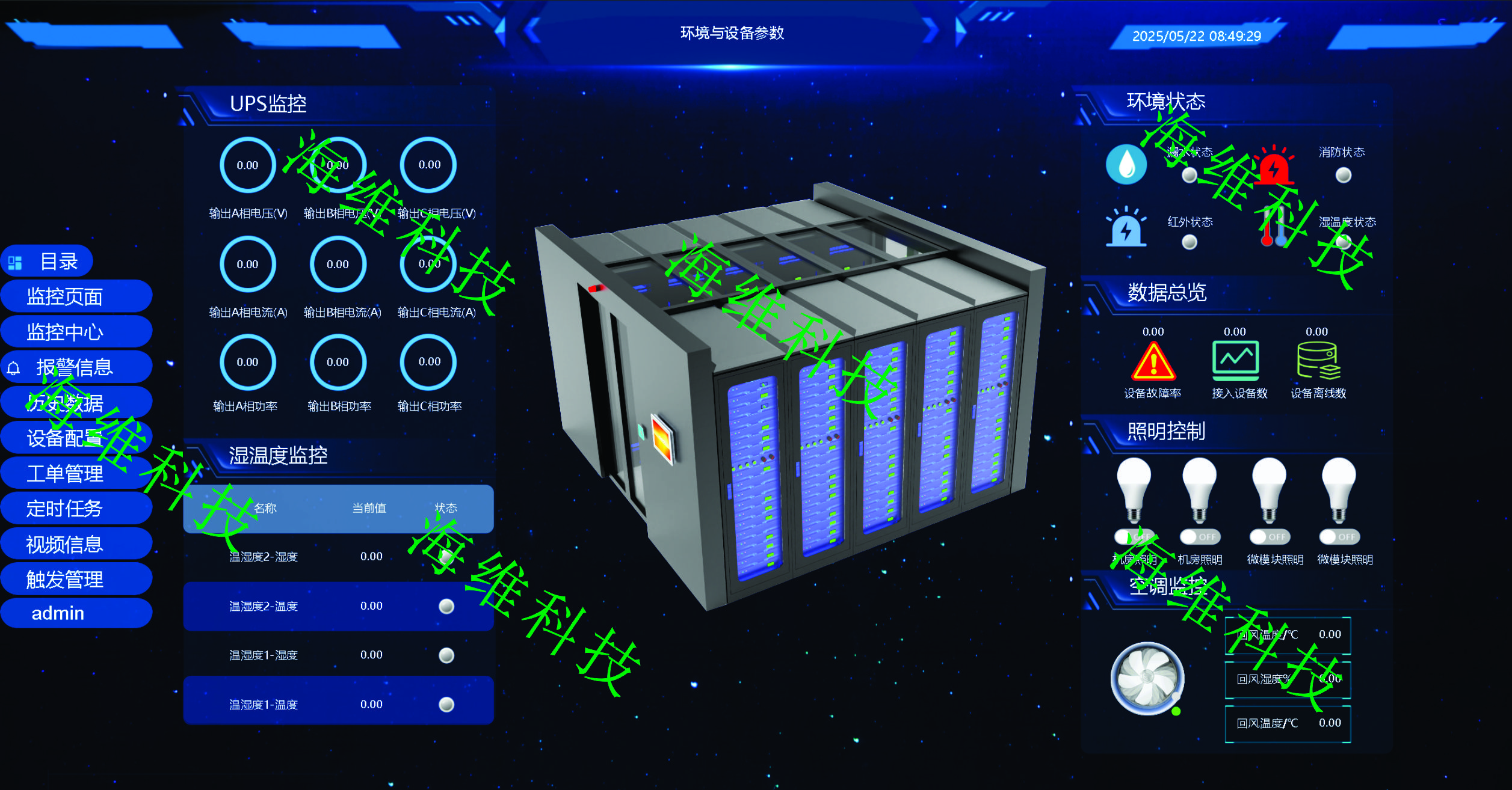動力系統: 配電房、變壓器、UPS電源等運行狀態(電壓、電流、溫度)、開關狀態。